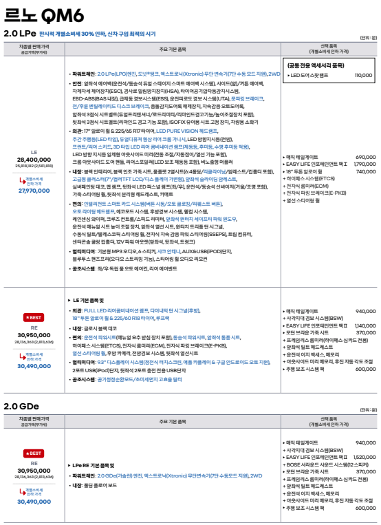 qm6 lpg 가격표 관련 이미지 / 출처: 르노코리아